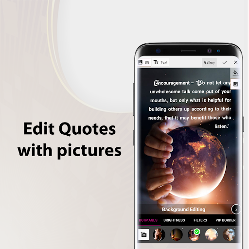 All in one photo editor provides various editing tools:apply filters and effects to the picture,and text to the image.