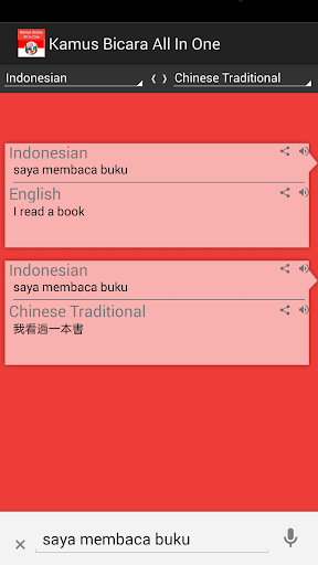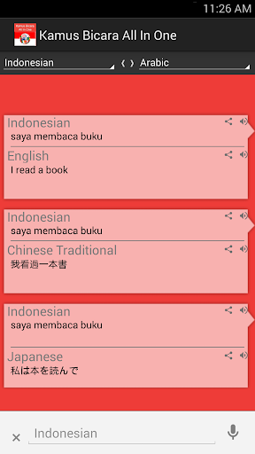 * Untuk yang menggunakan device yang mendukung speech recognition, bahkan anda tanpa mengetik bisa langsung mengucapkan bahasa Indonesia ataupun bahasa asing bersangkutan untuk mendapatkan translasi langsung!