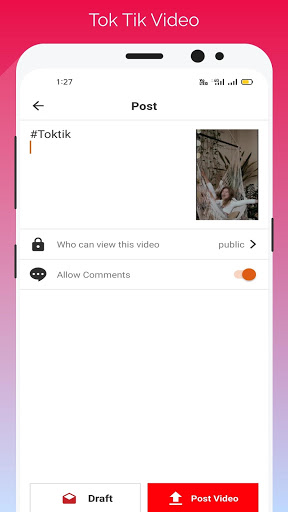 Tok Tik Video is a global short video creation platform, where everyone has a chance to gain popularity, billions of video views. Tok Tik is a Made In India app for Indian users. Enjoy the fun experience on Tok Tik Video.
