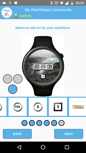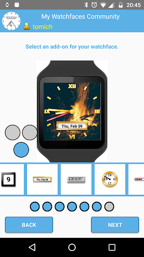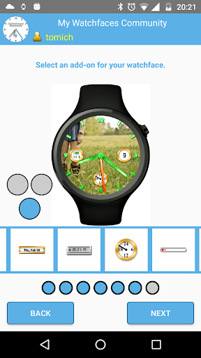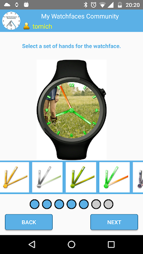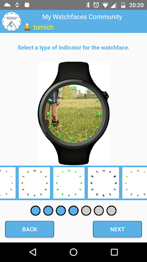 Create your own watchface for your Smartwatch by selecting a background, an indicator among the available ones, a set of hands and some complement among the available ones. Let your imagination run wild by creating your watch quickly and easily.