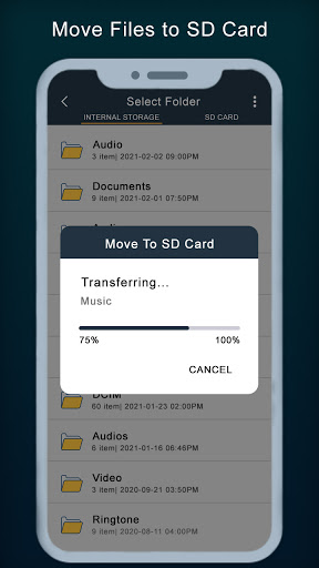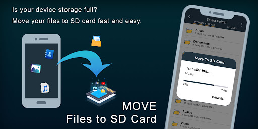 File To SD Card Transfer helps to transfer all your audio & music files from phone storage to SD Card in one tap.
