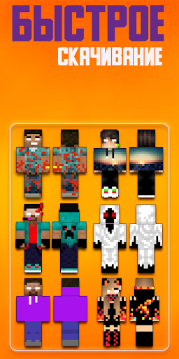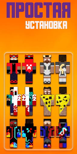Our application will help you change your outdated skin in minecraft to a newer and cooler one. Choose suitable suits for minecraft and in one touch download it to the gallery to your favorites, and then dress the top skins on your hero for free in multiplayer or single-user mode, both online and offline.