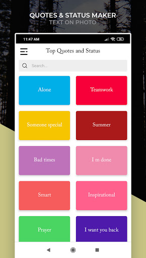 Daily quote notifications is the simplest and most powerful tools for mental growth. It’s all about keeping the right thoughts top of mind from the get-go every day, so they’re readily available on those hard days when you need them most. Daily motivational status. Pictures and text quotes on nature backgrounds. Motivational quotes status & sad quotes if life quotes This app will help you to get motivated at every point of your life with its largest collection of motivational quotes. Success Secrets app contains 50000Motivational, Inspirational and Success Quotes that start your day with motivation. It will help you achieve greatness in life. Positive Motivation is so important in life. It will help you stop asking questions, and align yourself towards your goals and aims. It quotes wallpaper and quotes writing app of quotes editor on image of quotes in hindi with images