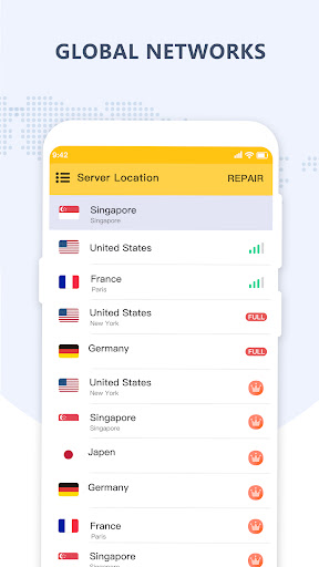 Multiple free VPN proxy servers are provided for you to enjoy the fast connection, access the geo-blocked sites and apps. Keep your network unobstructed!