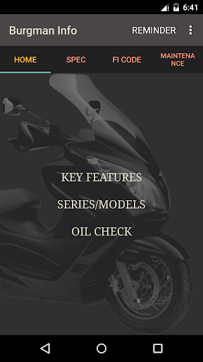 This simple application gives you information about Suzuki Burgman 400 scooter.