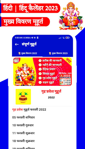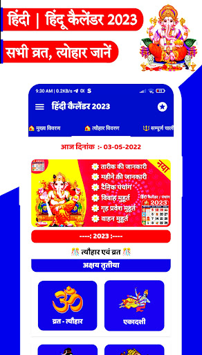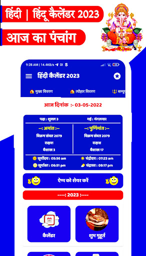 Hindi Calendar with 2023 Panchang offline app has the complete information like Holidays, Festival list, Subha Muhurat, fasting days.