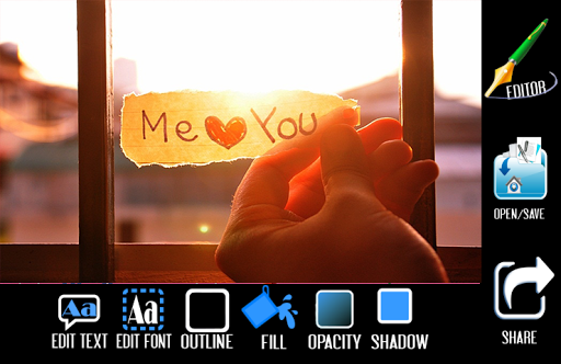 Write on Photo Editor help you easily add any texts, cool stickers, frames and themes seconds and share it via Email, Facebook. You can also add borders, shading, fill, adjust opacity and put your pics into lovely frames and create a real photo wonder. Write on Photo Editor will add a magical effect to your already beautiful selfie pics on Instagram. Enhance love couple pictures by using this amazing photo editor pro! Let it begin!