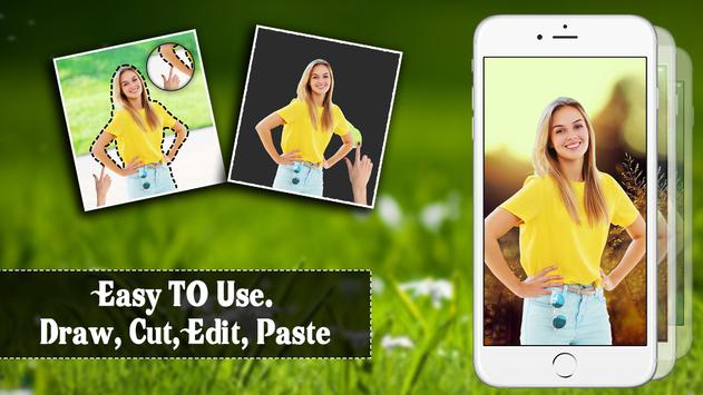 Just select the area you want to cut and paste it on another picture. App comes with Advance Edit option to get perfect result.