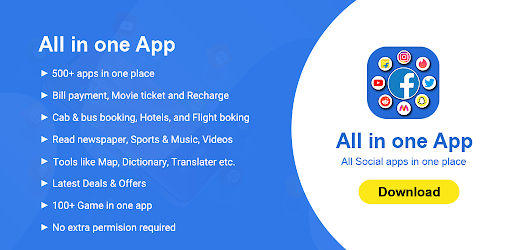 ⭐ All social media in one app 2021, is a save space app. Works as a browser for android for all apps in one app. You can save space on your phone so that you do not have to download Most of the social networks apps for a chat on your mobile phone. The App so "all social networks app" offers shows you great marketing apps like Alibaba, and Amazon.