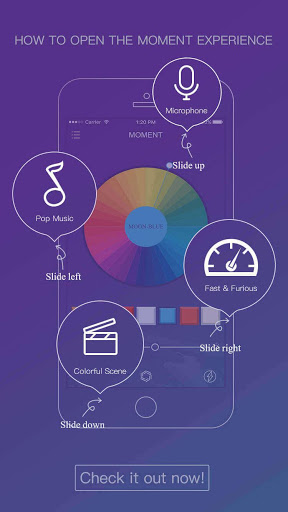 Moment is an innovative app that designed for NSSC's latest Bluetooth RGB LED Light Kit. It makes your vehicle look more beauty at night by casting dynamic light with any color your chose in the app. The light can be synced with music or any sound recorded from microphone, or chosen from the palette in the app.