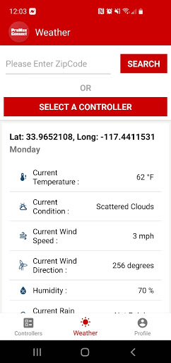This app is only compatible with Toro DXi and Rain Master DX3 Series controllers that are connected to the Toro Cloud Connect™ server. Downstream satellites will not function with this app unless they been independently set up to use Cloud Connect. Once the ProMax Connect app has been downloaded, call Technical Support at 800-777-1477 to set up login credentials. Please have your central control’s organization Cloud Connect ID and password ready when you call.