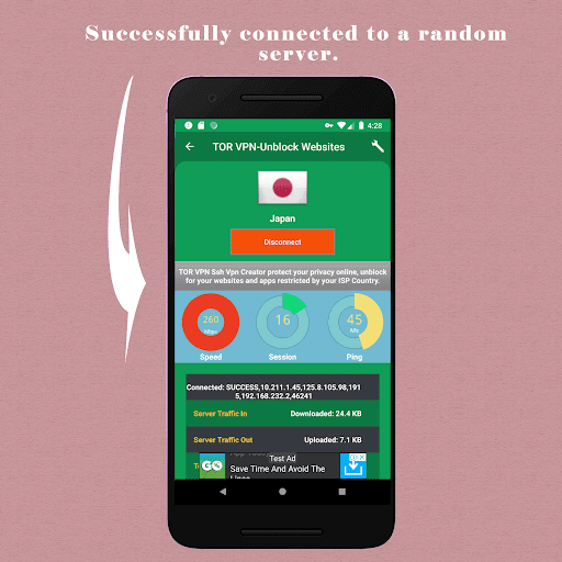TorVpn has a turbo speed connection. You can quickly connect easily to a proxy server with one click.