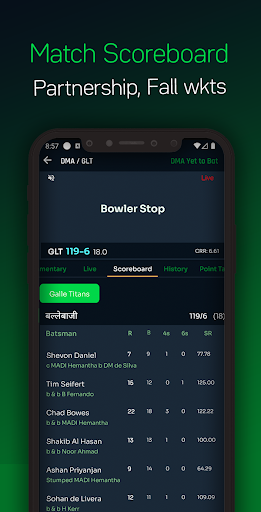 • Live Scoreboard with Partnership, Last Wicket & Next Batsman