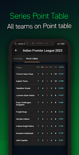 • Upcoming and Trending Series Details with Point Table & Squads.