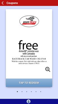 Shift gears and download the new app for Race Track Car Wash, a faster drive to great deals, savings, coupons and exclusive offers. The app is your engine for savings and includes self-service, full service, monthly VIP and detail specials. So steer straight through the Race Track Car Wash app to the best clean car deals, superior service and even a patio so you can relax while we do the work!