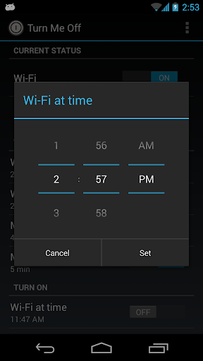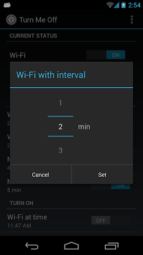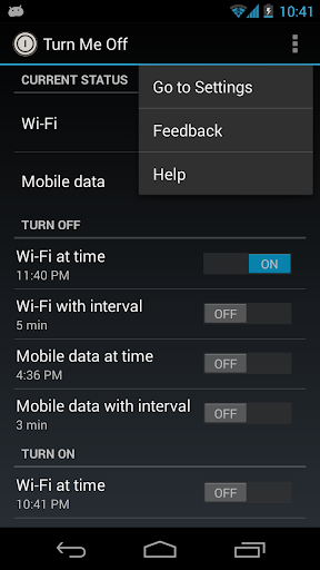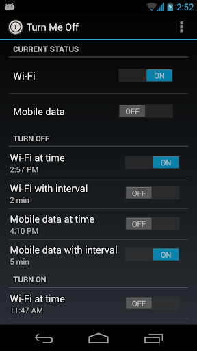 Scheduling Wi-Fi and Mobile data turn ON/OFF events.