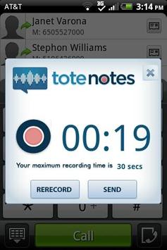 Tote Notes is designed for people who make frequent calls on their mobile devices and are frequently on the road or unable to make call notes as they speak, such as sales people, executives, and