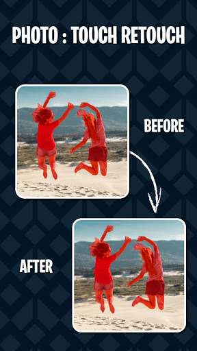 Touch Retouch is allows you to remove unwanted content or objects from any photo, using just your finger and your phone.Touch Retouch - Photo Remove Objects Photo editing has never been so quick, easy and convenient.Removing unwanted content from images is as easy as one, two, three with the Retouch tool, object remove.