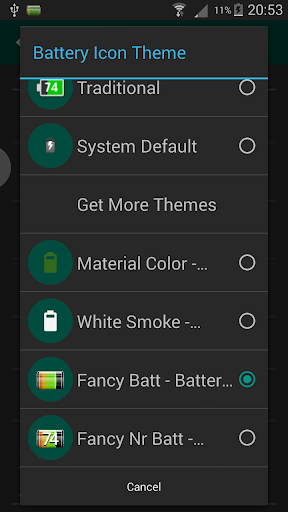 Once installed, you can configure the icon using the Battery Icon Theme preference in the GSam Battery Monitor preferences. Open GSam Battery Monitor > Select Preferences > Battery Icon Theme > and choose one of the icons from the icon pack. These will be listed underneath the 'Get More Themes' link.