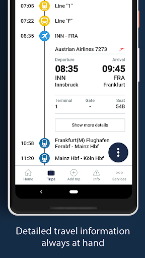 • Real-time notifications via Push, SMS and Email in case of any changes of your itinerary (e.g. delays, cancellations, etc.)