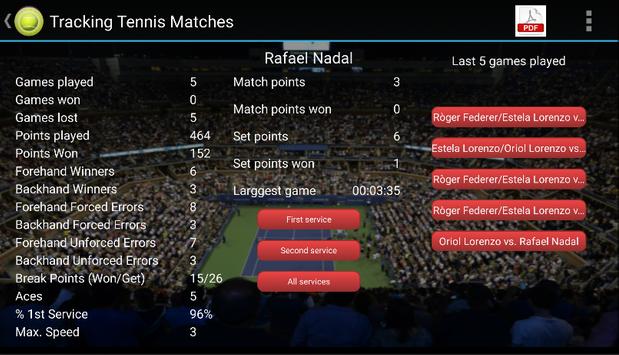 Tracking Tennis Matches allows to manage your own statistics of tennis matches. Create your players, play with him and track their matches as you want.