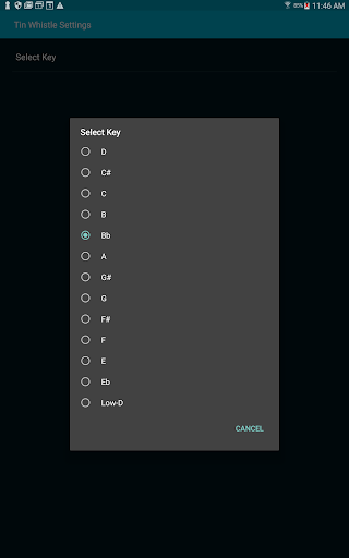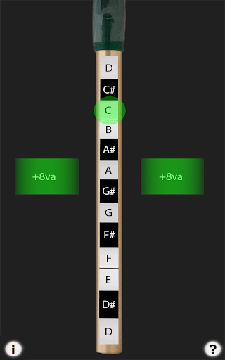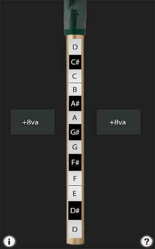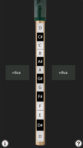 Tin Whistle now plays in all keys from Low-D to High-D! Touch the "i" to bring up the key selector.