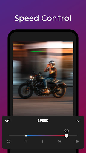● Fast/slow motion feature (Adjust video speed from 0.5× to 2.0×), Editing video and adjust video speed with video filters and effects.