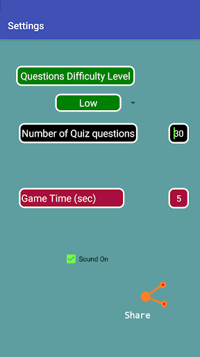 • Difficulty levels can be changed on the fly during Quiz sessions, but not during the game in order to keep the concentration