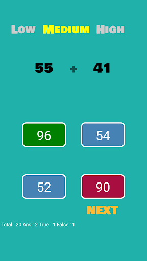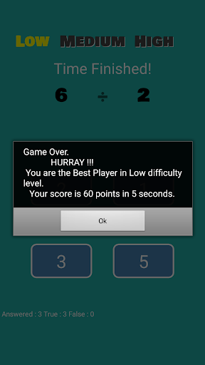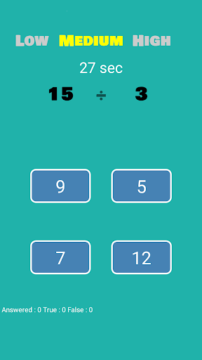 It is intended to drill the kids in Training mode for each math operation (Addition, Subtraction, Multiply, Division and the mixed mode). Once kid is confident, he/she can check his brain response by playing the game.