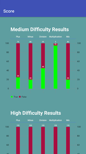 • Kids can train the basic math operations separately as well as combined in Mix mode