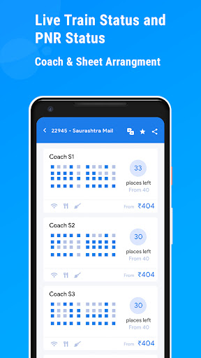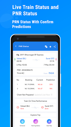 Live Train Running Status, IRCTC PNR Status & Indian Railway Infoapp is fully featured all in one Indian Railway App. It is one of the fastest and a very light weight application to find all necessary information about Indian Railways with a very simple interface. You can check train tickets and get live Train Information like how much delay your train is and position at any time as well as a ton of information like Platform number, Train schedule, seat availability, PNR Status, Train Live Status, Seat / Berth Map etc.