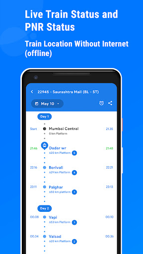 Gets live train running status of Indian Railways anytime, anywhere. You can share current train location with your friends & family via the share feature.