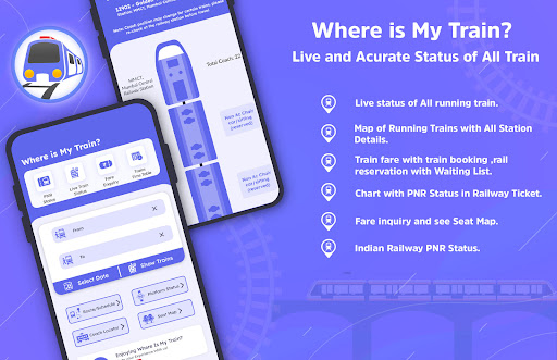 The Indian Railway App includes Live Train Running Status, IRCTC PNR Status, and Indian Railway Infoapp. With a user interface that is easy to use, it is one of the quickest and lightest applications for finding all important information on Indian Railways. You can check train tickets and obtain real-time train information, such as the amount of delay and location of your train, as well as other details, such as the platform number, train timetable, available seats, PNR status, train live status, seat / berth maps.