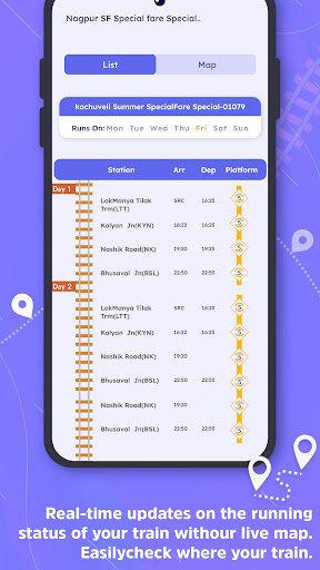 Please utilise the Where is My Train App to receive more accurate timetables for all trains, which includes features like routes/schedule, train ticket booking, live train status, PNR status, seat availability, and all trains waiting list! We're eager to hear your opinions!"