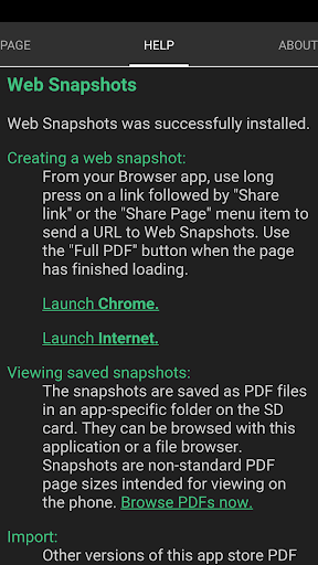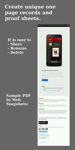 * The snapshots created by this app are in a unique tower or vertical banner format that fits an entire web page onto one non-standard PDF document. They are exact pixel reproductions of the page you see in the web browser and make great proofs for web designers.