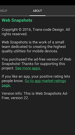 ** No subscription: after your one-time purchase of this app, you can create unlimited snapshots without paying ever again.