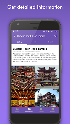 The attractions shown in NearBy come with a lot of important information such as photos, detailed descriptions about the history of the place, experiences and also more attractions nearby the attraction you are interested in.