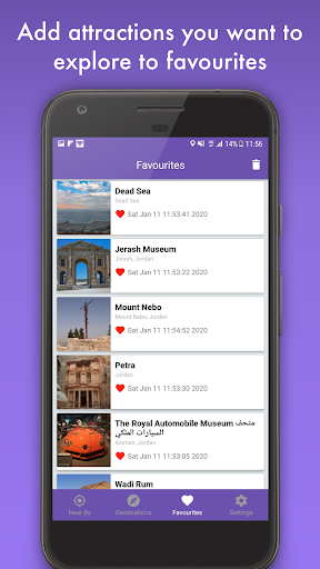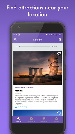 When you open the app, it is straight to business. You will be immediately presented with attractions nearby your current location. You can filter them by distance and add attractions to your favourite list.