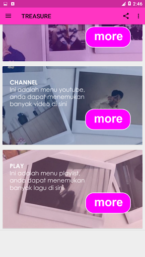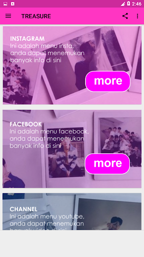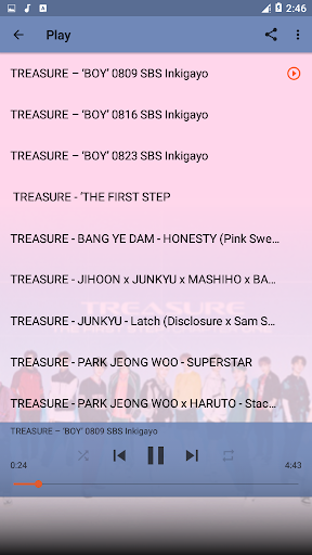 Di aplikasi ini anda dapat mendengarkan lagu-lagu terbaik dari Treasure yang sangat direkomendasikan untuk anda, lagu Treasure ini dapat diputar secara offline. selain itu juga nada yang terdapat di app ini dapat digunakan sebagai nada dering, pengingat pesan dan alarm. App ini didukung juga oleh video dan sosial media untuk membantu informasi yang dapat anda akses secara online. terimakasih, selamat menikmati lagu dari Treasure, anda jangan sampai ketinggalan.
