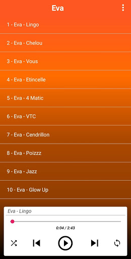 Profitez de la meilleure musique avec Eva, il est facile à utiliser et a un design très simple et convivial. Avertissement: Cette application n'était pas prise en charge par Eva, elle est uniquement conçue pour les fans.