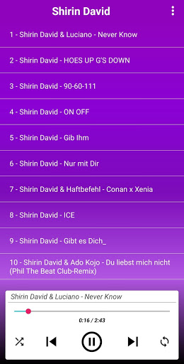 Enjoy the best music with Shirin David, it is easy to use and has a very simple and friendly design. Disclaimer: This app was not supported by Shirin David, it is only made for fans.