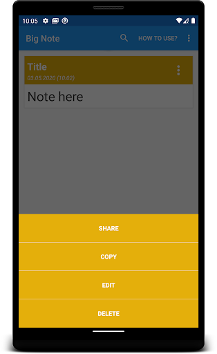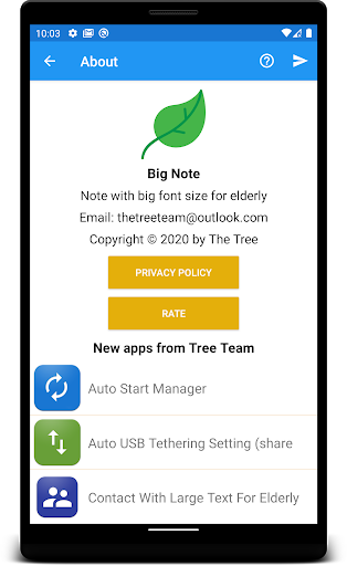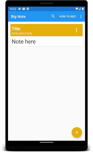 #Introduce This is application can help elderly create, view note easily with big font size and simple UI. #Features ✓Create and view note for elderly ✓Big font size and simple UI #How to use this app? Create note by tap " " icon at bottom screen.