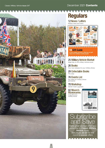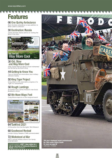 Classic Military Vehicle magazine covers a comprehensive range of military vehicles from the beginning of mechanisation at the start of the 20th century and continues up to the recent Gulf and Afghanistan conflicts. It concentrates on wheeled and tracked military hardware that featured in conflicts around the world. Such vehicles are featured extensively with in-depth profiles each month in the form of readers’ restorations and historical features as well as regular news, event reports, book reviews and archive photo sections including the centre spread.
