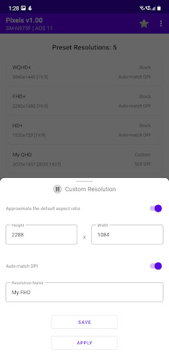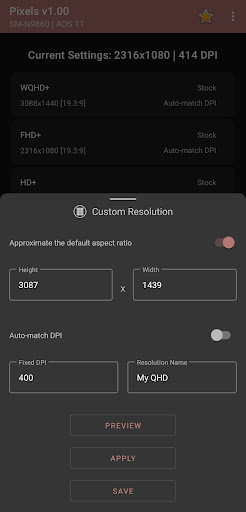 ✅ Save multiple custom display resolution and density settings to the preconfigured list for easier use anytime (premium). Free user is limited to saving one custom resolution only.