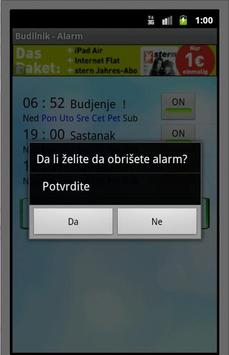 - Ukoliko zelite da obrisete budilnik / alarm, zadrzite se na par sekundi na alarmu koji zelite da obrisete