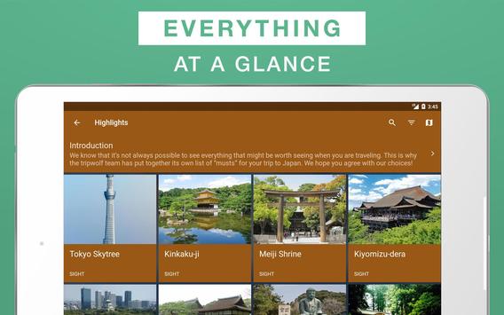 The Japan travel guide app is free and contains optional in-app purchases. Free content includes overviews of all important places, as well as access to content from Wikipedia, Yelp, Foursquare, Quandoo and Booking.com. Functions such as day planner, routing and maps are available online.