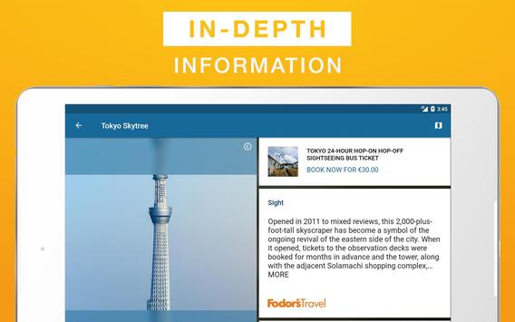 The Japan travel guide contains content from a variety of sources. It includes premium content from the experienced travel authors at MARCO POLO and Fodor’s Travel as well as community-based content from Yelp, Wikipedia and Foursquare.