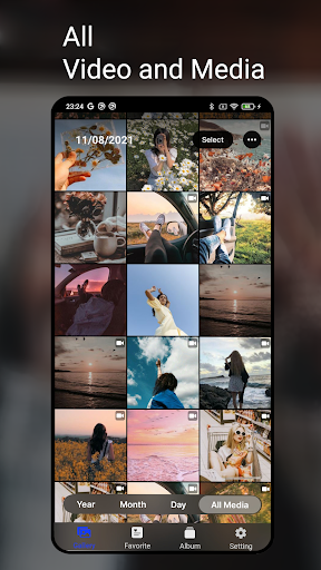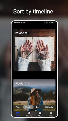 - Show media by timeline (day, month, year)