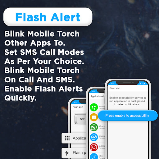 Flash Alerts on Call - Flash Notification Alerts allows you to blink the flash when you receive phone or SMS or app notifications.Use Flash Alerts on Call - Flash Notification for all notifications including Phone calls,emails,and messenger.