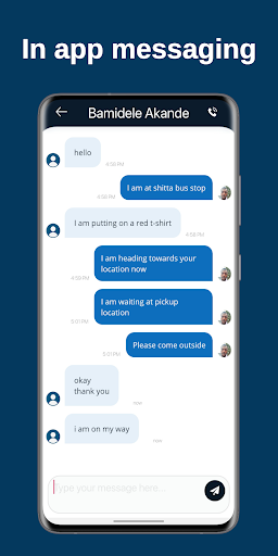 • In app messaging with driver.